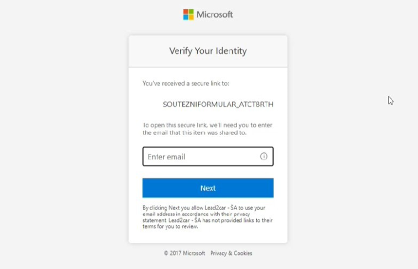Oprávněné osoby, které byly uvedeny v zadání, obdrží e-mailem unikátní odkaz k souboru na Sharepointu, kde budou zaznamenány veškeré sebrané záznamy. Po kliknutí na odkaz bude třeba zadat uvedený e-mail, na který byl odkaz zaslán: