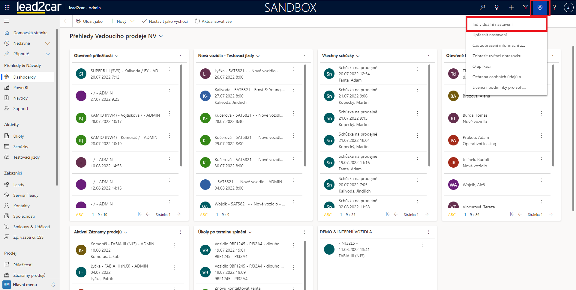 Nastavení se otevře kliknutím na ozubené kolo v pravém horním rohu obrazovky. Dále je z možností třeba zvolit Individuální nastavení.