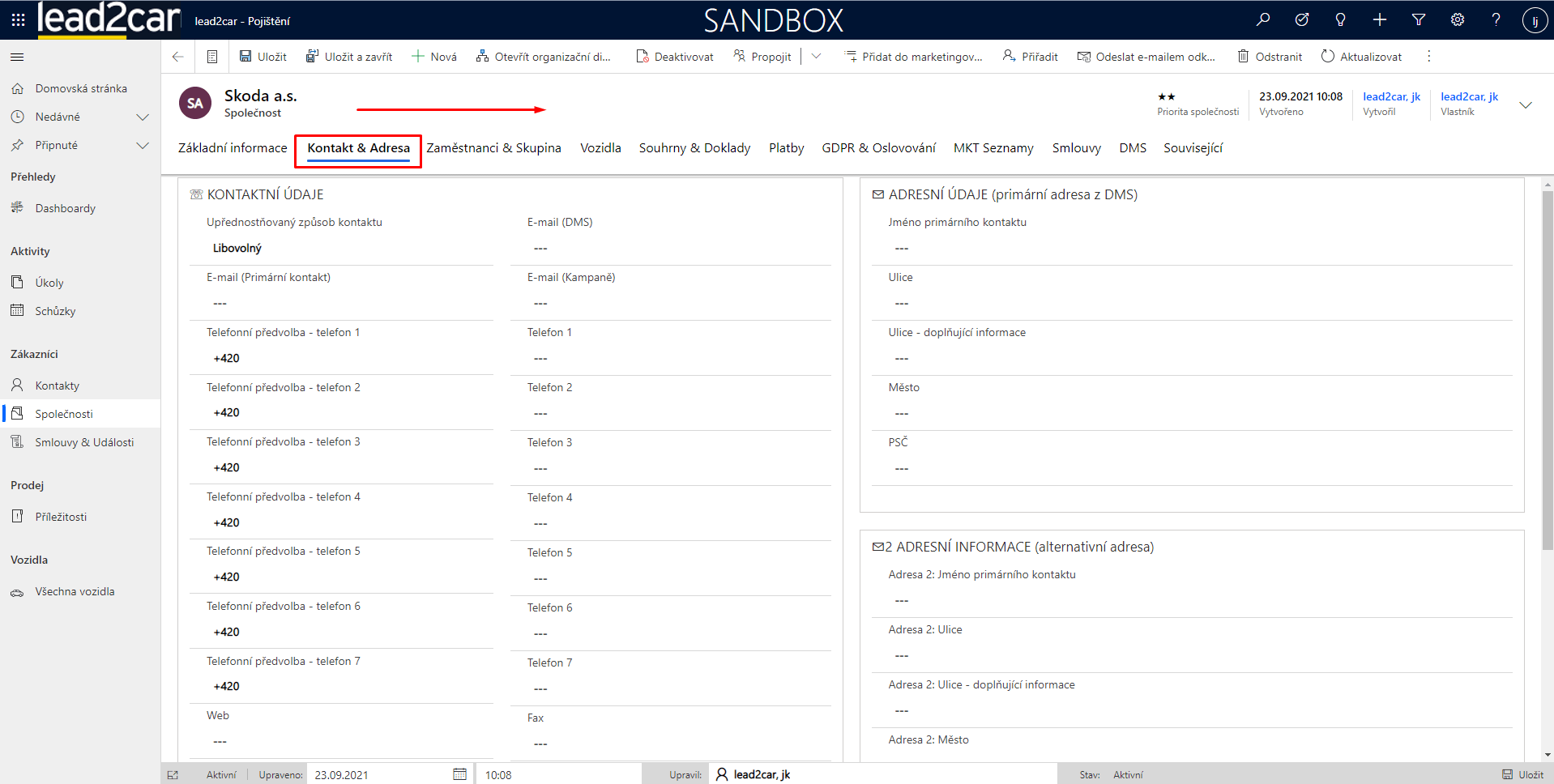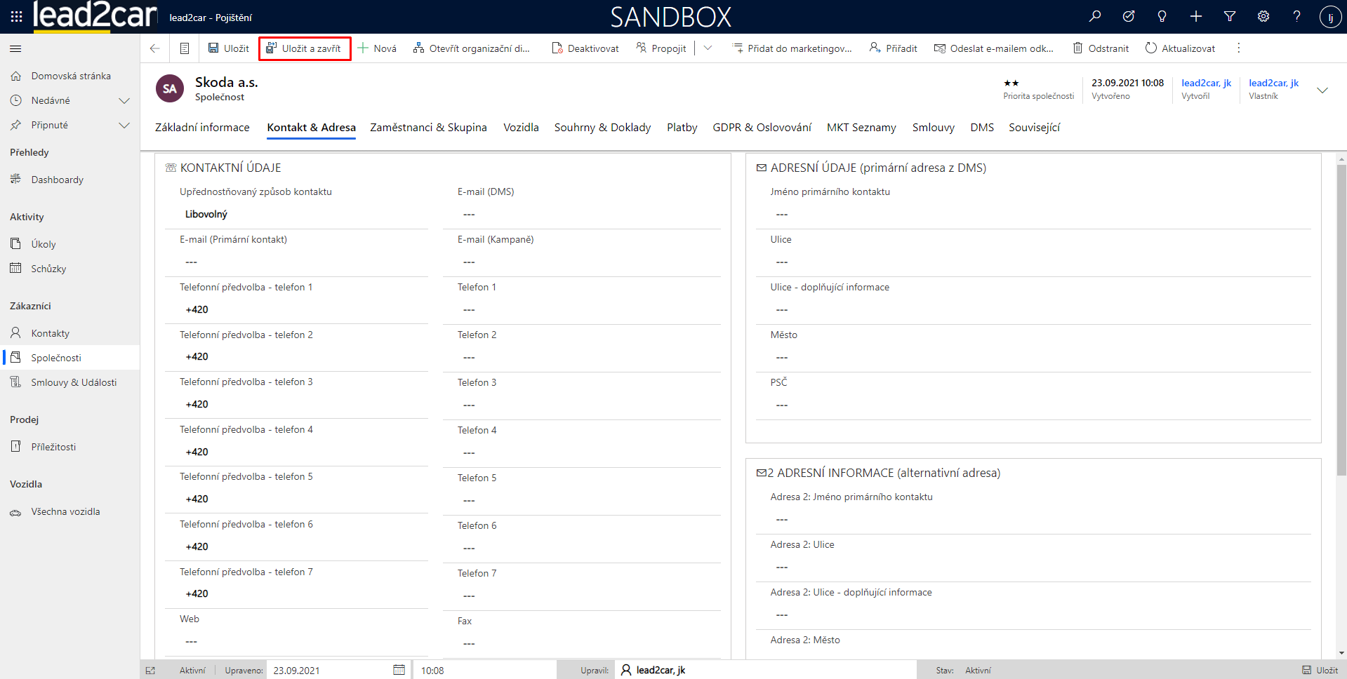 Nezapomeňte vyplnit také ostatní pole – Kontakt & Adresa, Zaměstnanci & Skupina a další…