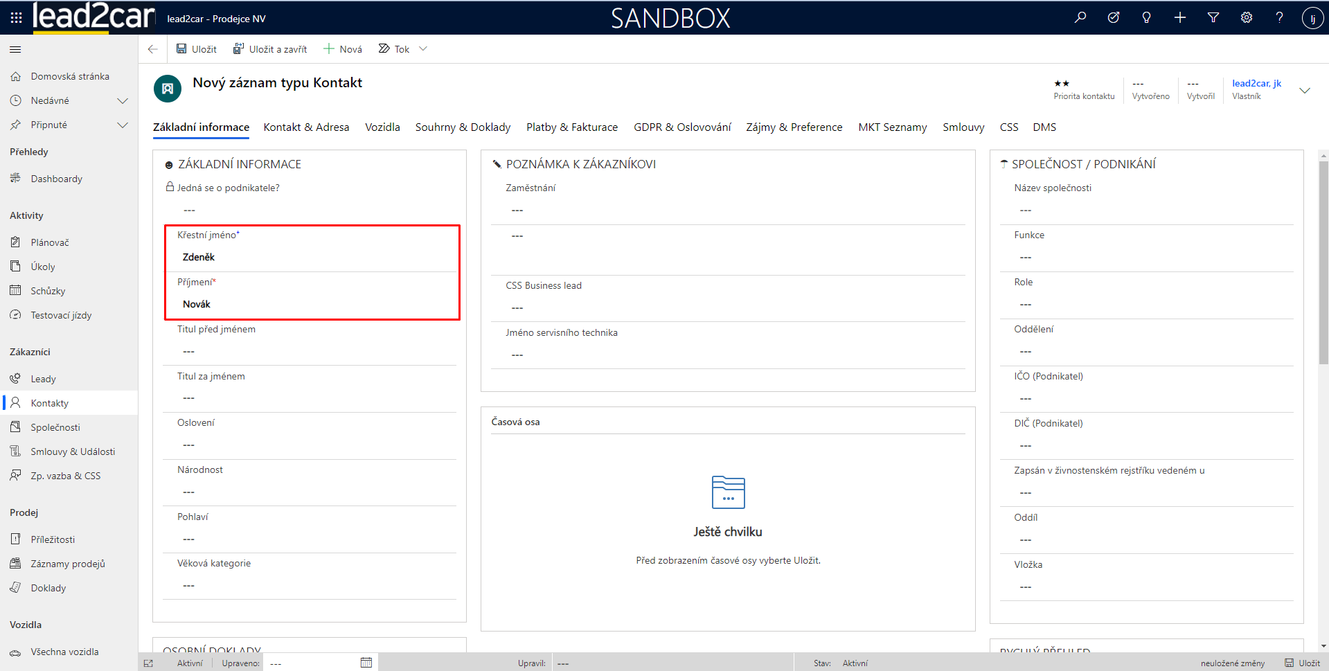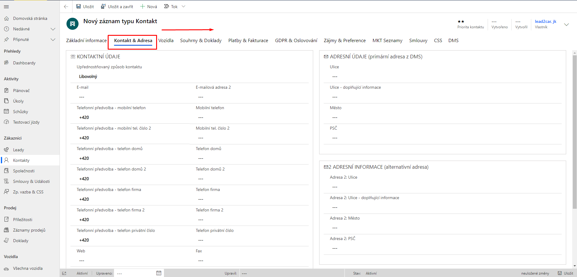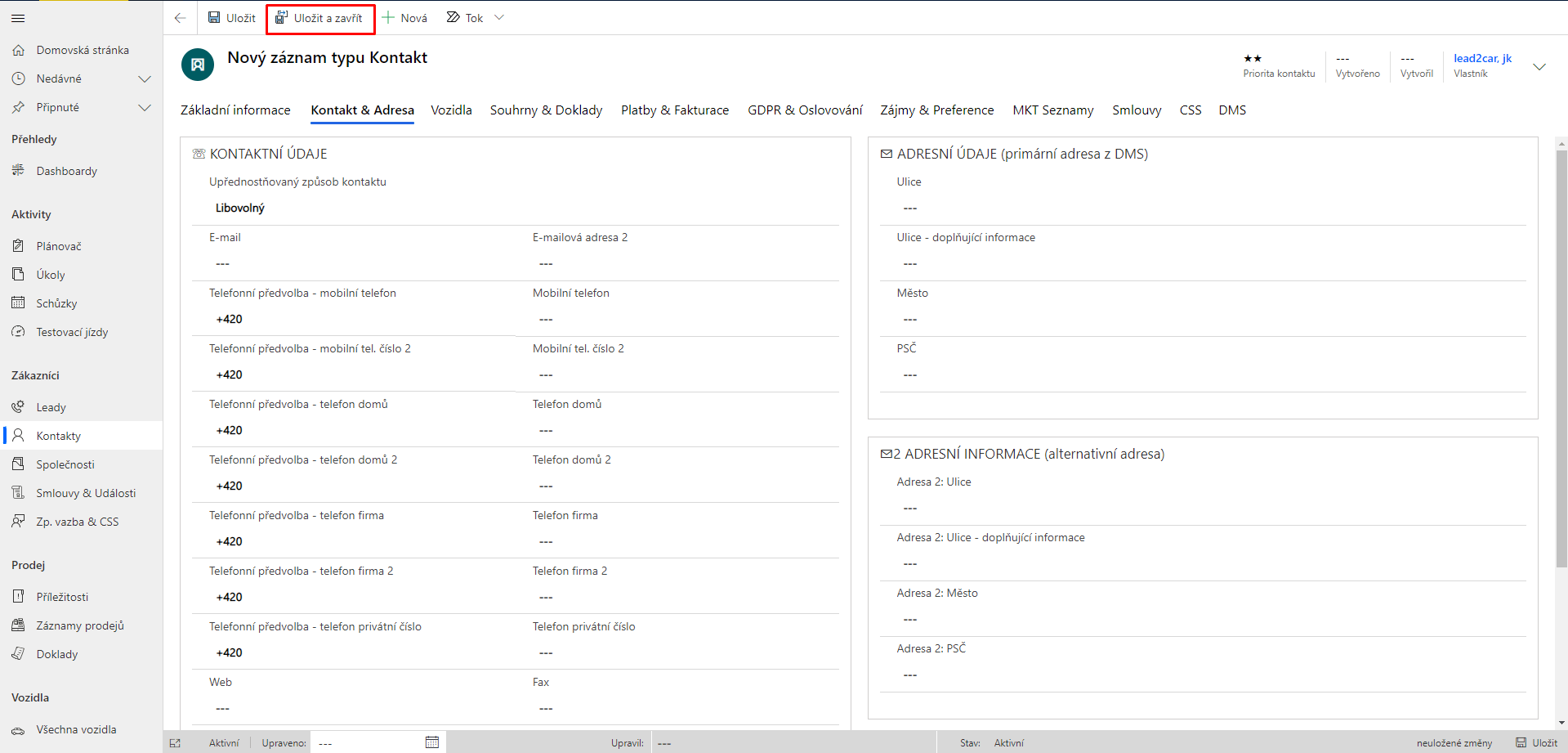 Nezapomeňte vyplnit také ostatní pole – Kontakt & Adresa, Vozidla a další…