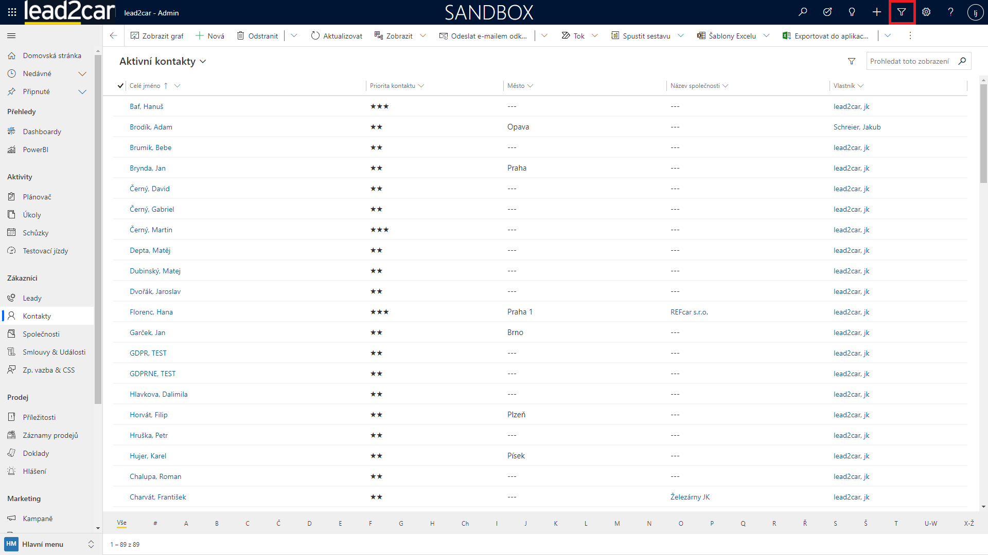 Pokud potřebujete například exportovat specifické záznamy do excelu, můžete k tomuto účelu použít tzv. query. Tu vytvoříte tak, že nejprve kliknete na ikonku filtru vpravo nahoře vedle ikonky nastavení.