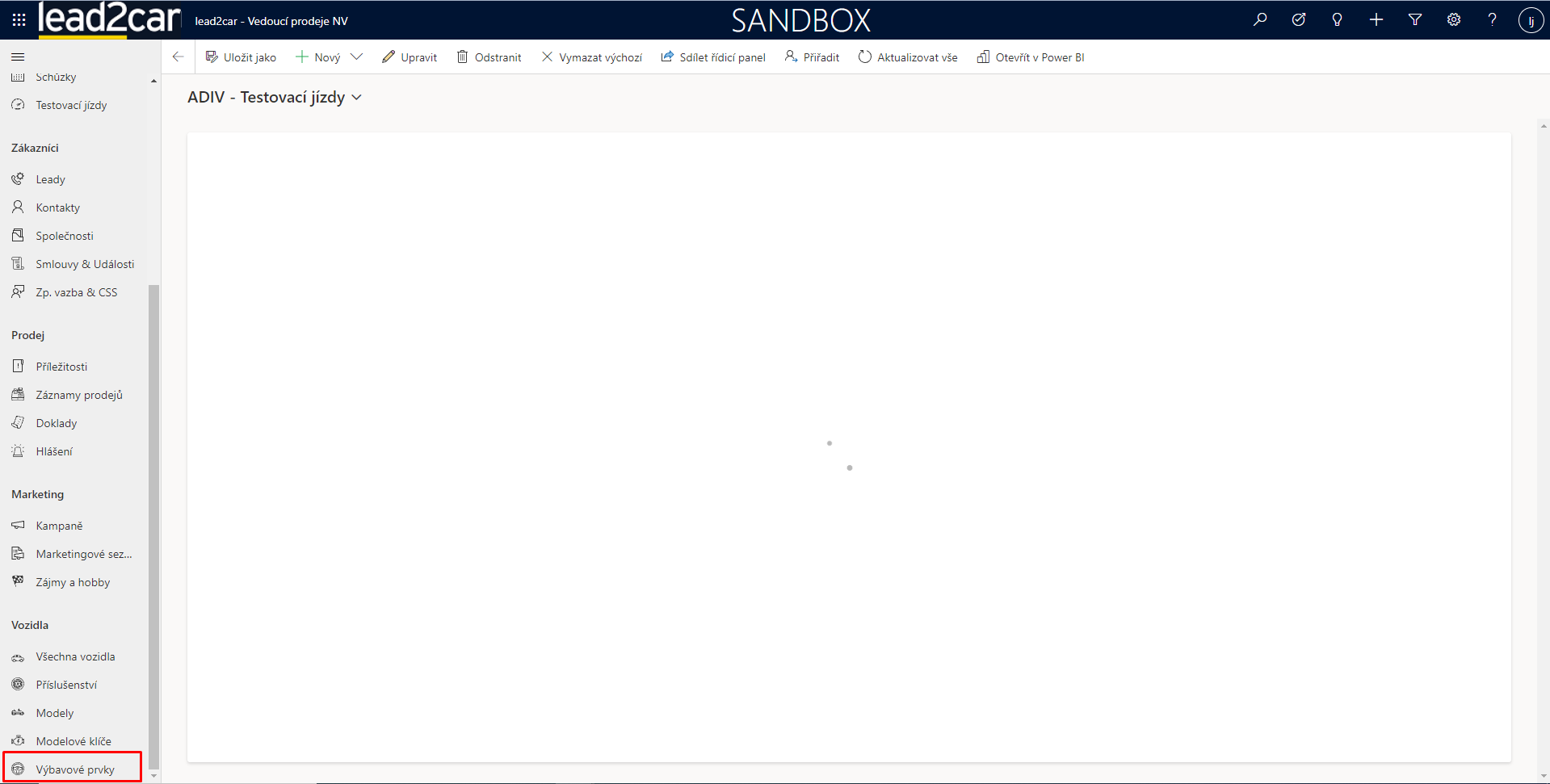 Po rozkliknutí výbavových prvků v levém menu se otevře zobrazení se seznamem výbavových prvků.