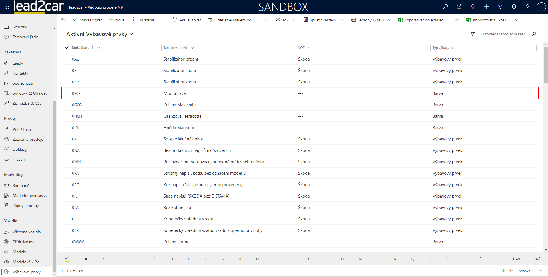 V entitě "Výbavové prvky" lze nalézt seznam, kódy a detaily nabízených výbavových prvků.