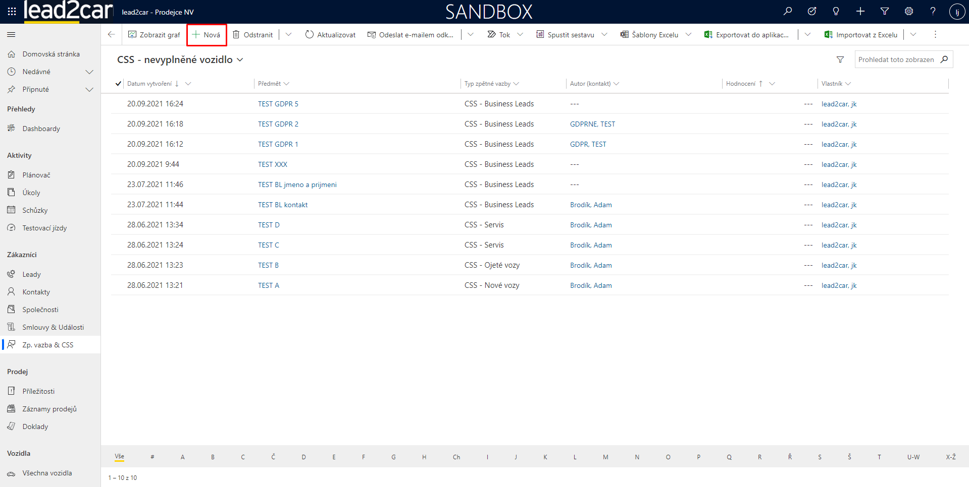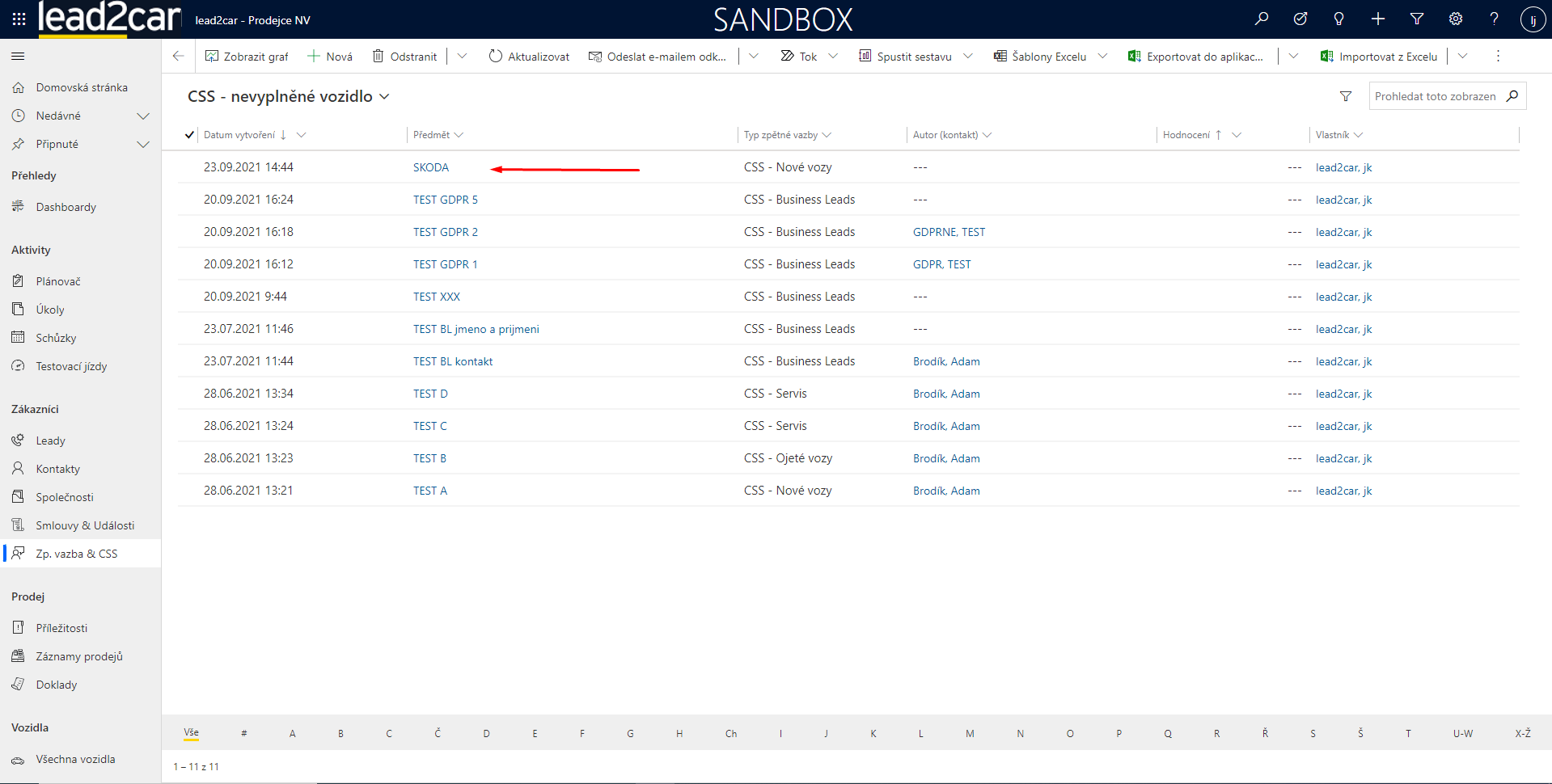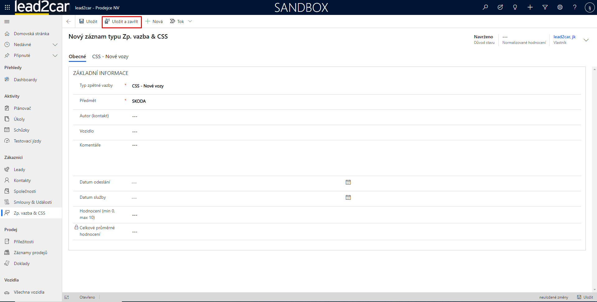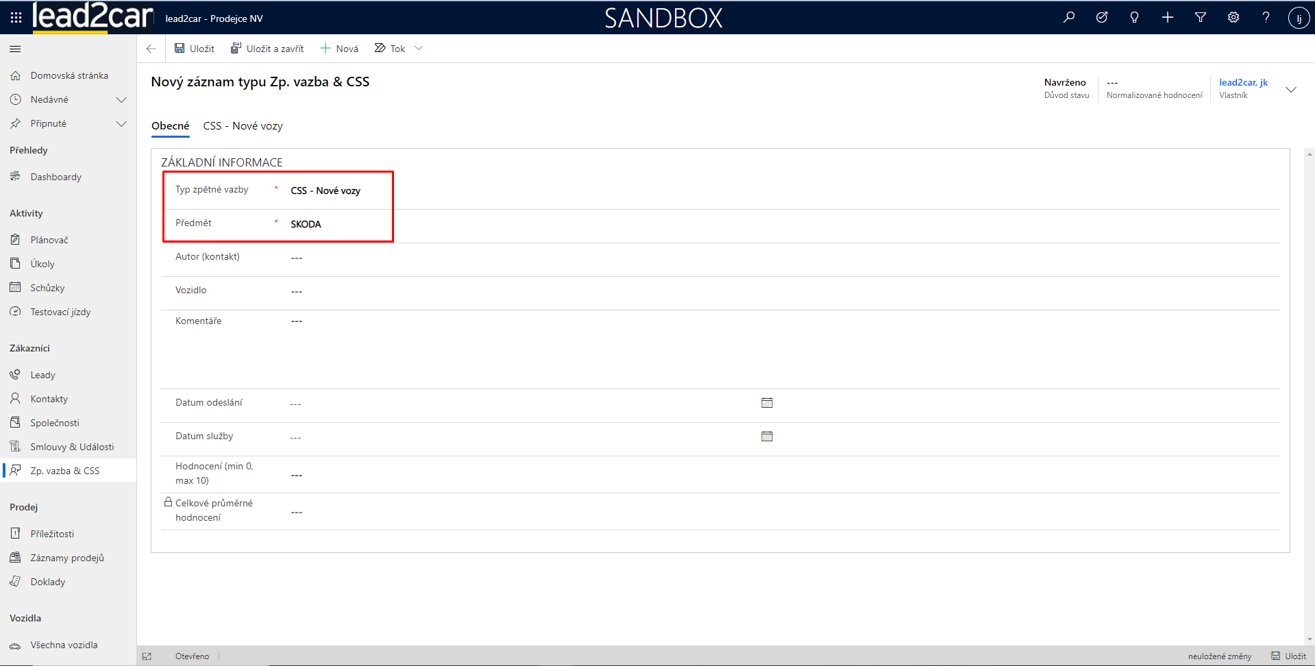 V entitě "Zpětná vazba & CSS" lze evidovat spokojenost zákazníků s vozidly nebo servisem, přiřadit k otázkám o spokojenosti konkrétní vozidlo, případně sledovat celkové hodnocení spokojenosti.