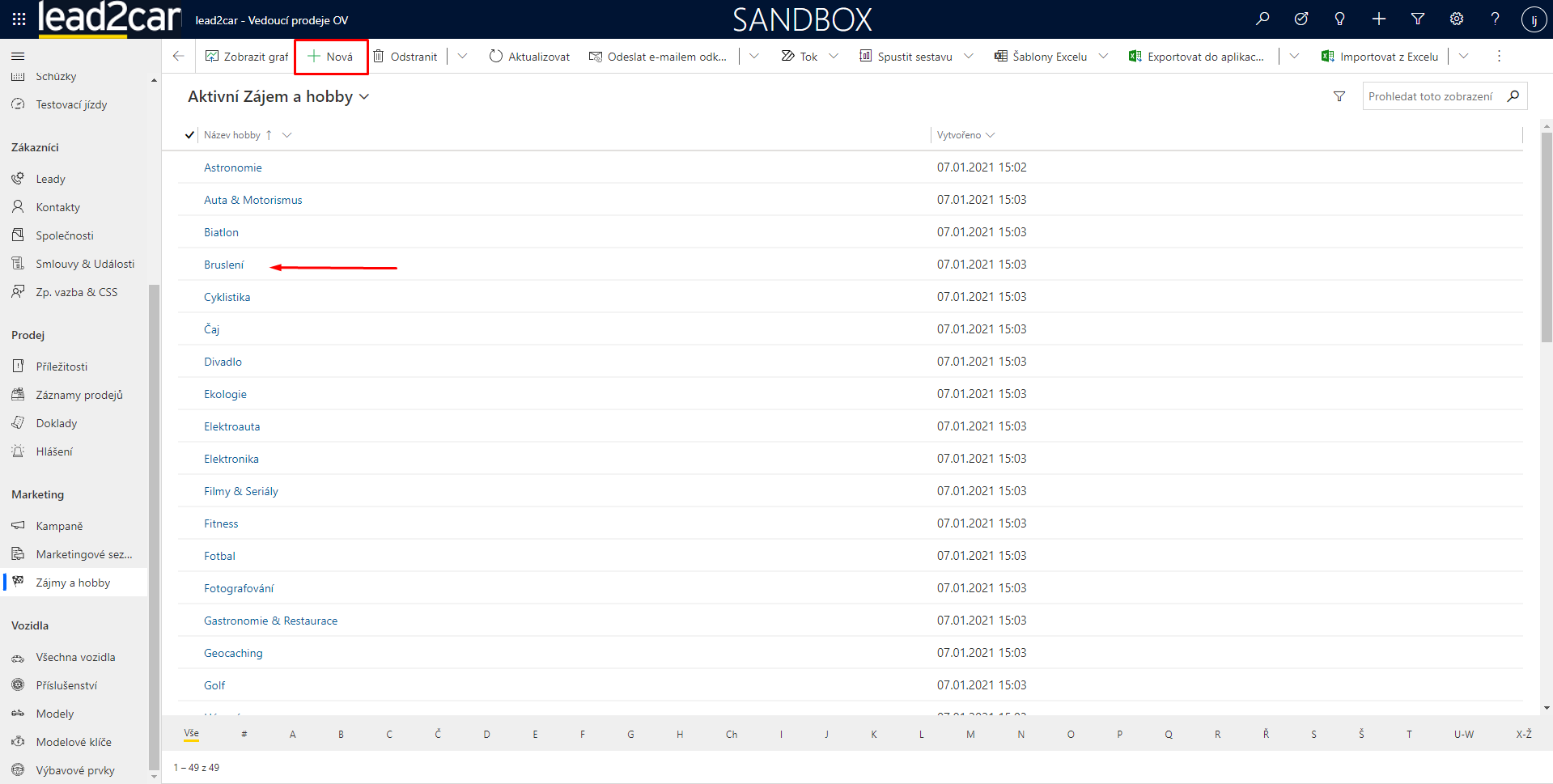 1. Vytvoření zájmu