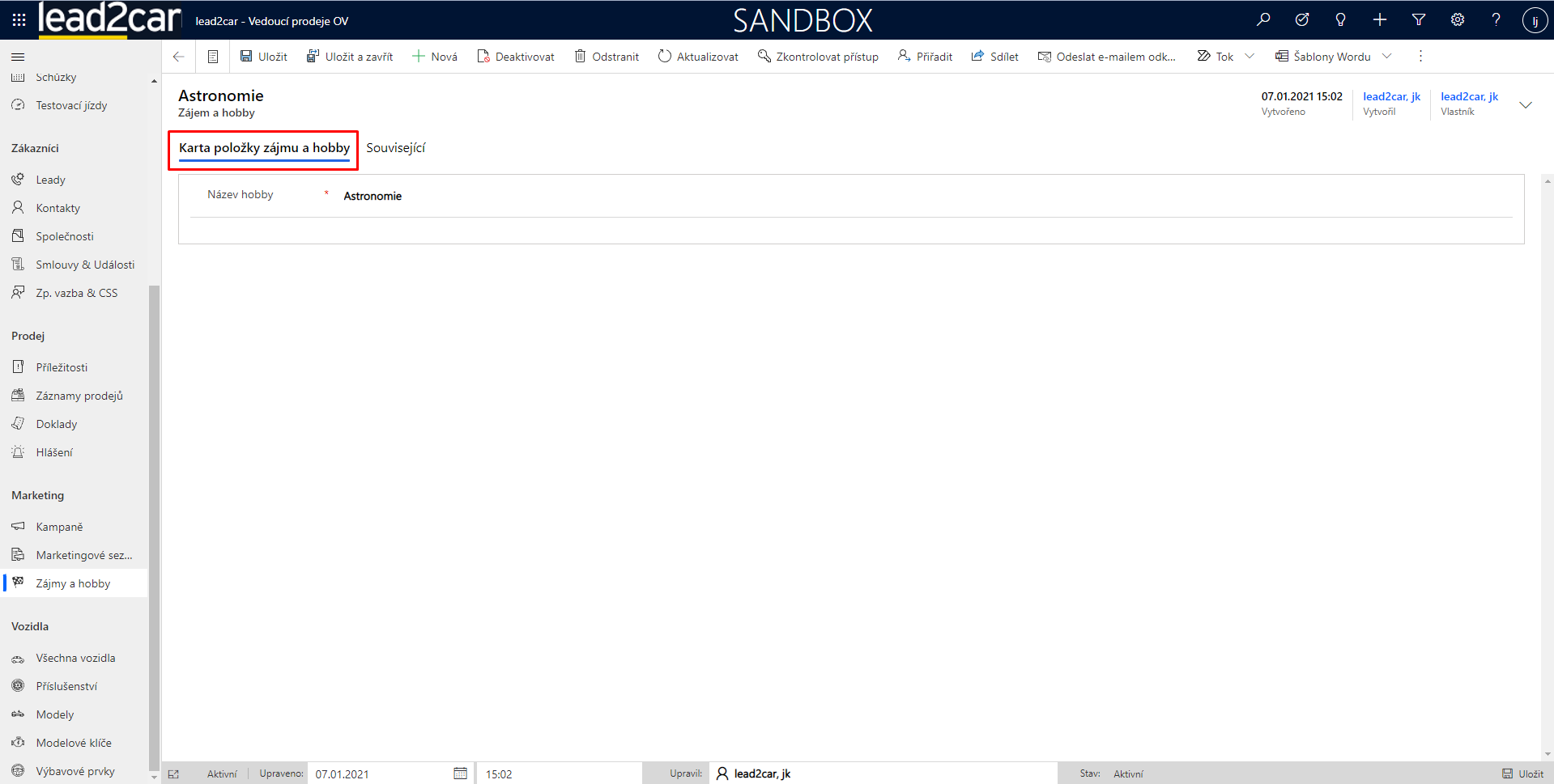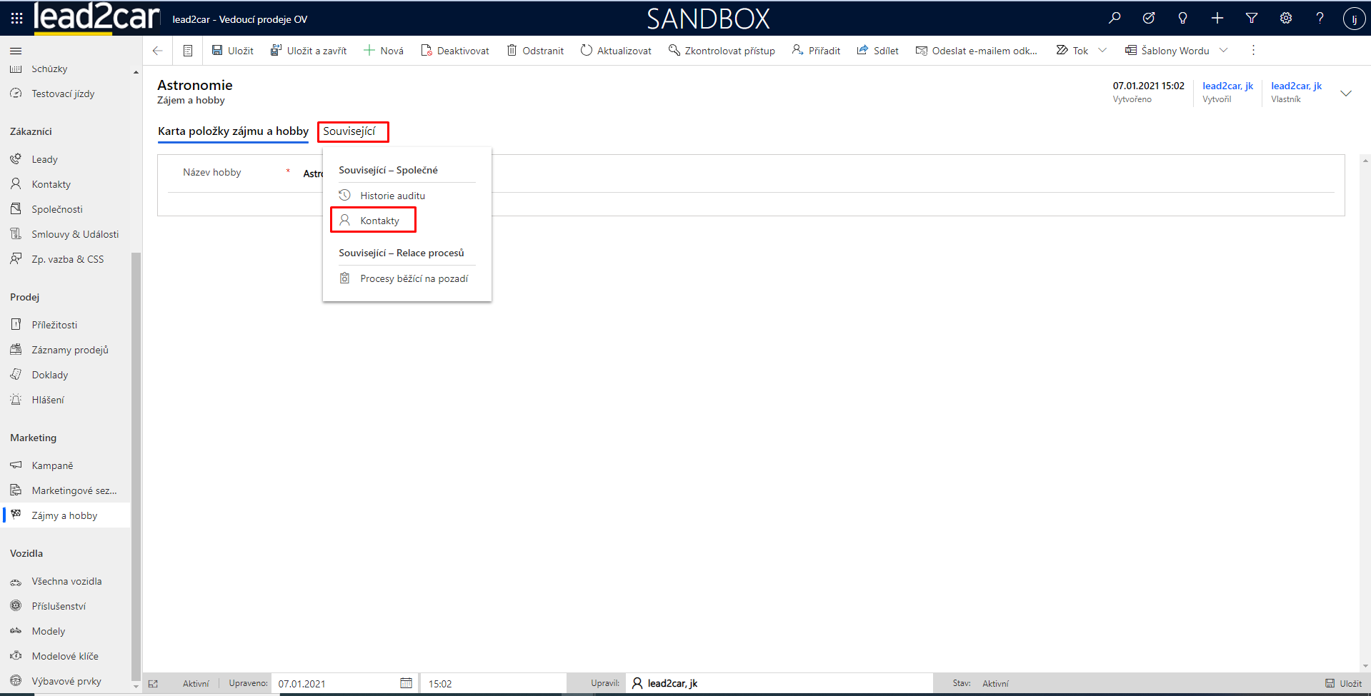 U stávajícího zájmu si lze ještě otevřít možnost související, ve které se nacházejí například údaje o kontaktech se stejným zájmem.
