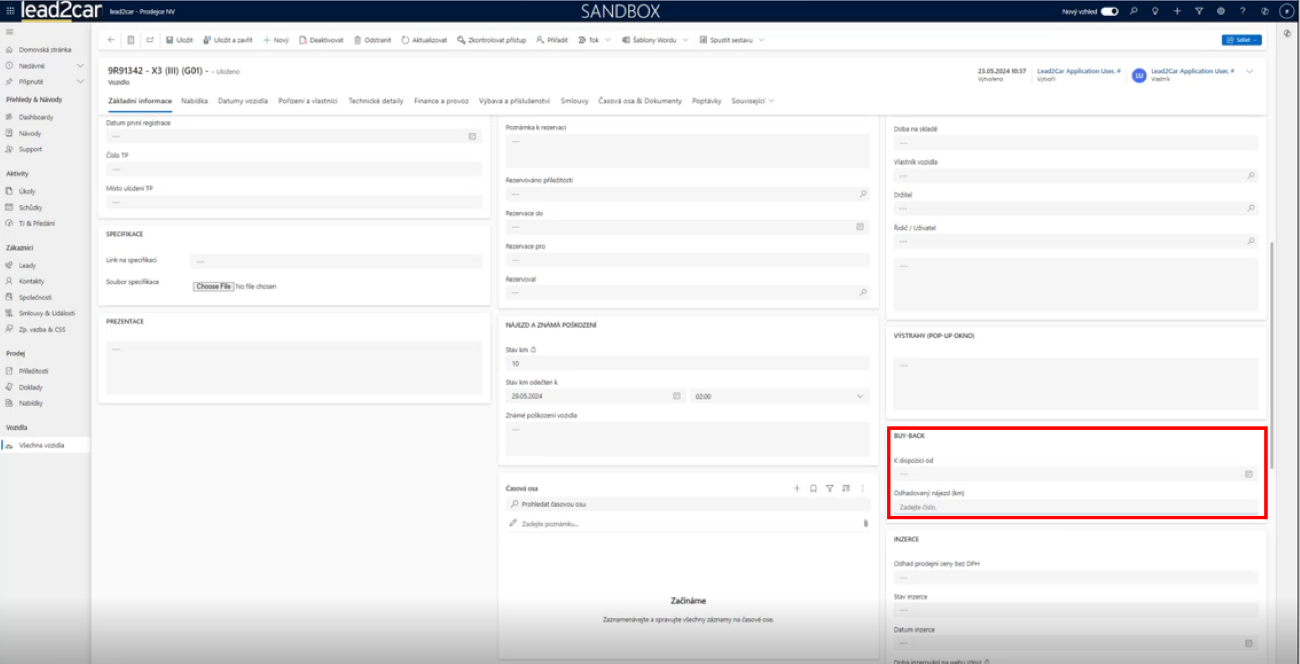 V tomto návodu se dozvíte, jak správně vyplnit dvě důležité pole – „Odhadovaný nájezd“ a „Dostupnost“ – u vozidel s příznakem „Buyback“ v systému Lead2Car. Tyto údaje je nutné doplnit pouze pro vozidla s tímto příznakem.
