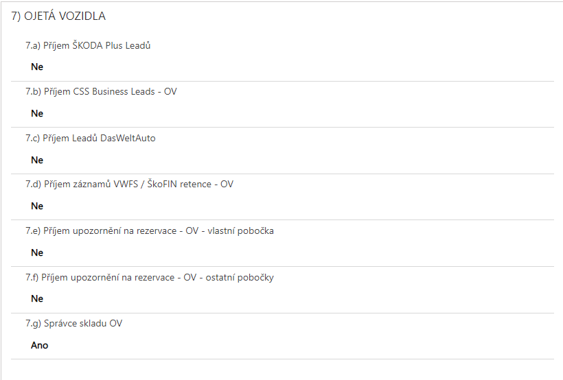 Tomuto uživateli se posílá email v okamžiku, kdy je záznam prodeje na OV vozidlo označen jako Finální. Takto označený uživatel musí být také ze stejného pracoviště jako vlastník záznamu prodeje.