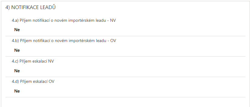 V momentě, kdy systém zaznamená vytvoření nového servisního leadu, jsou uživatelé s tímto příznakem notifikováni emailem.