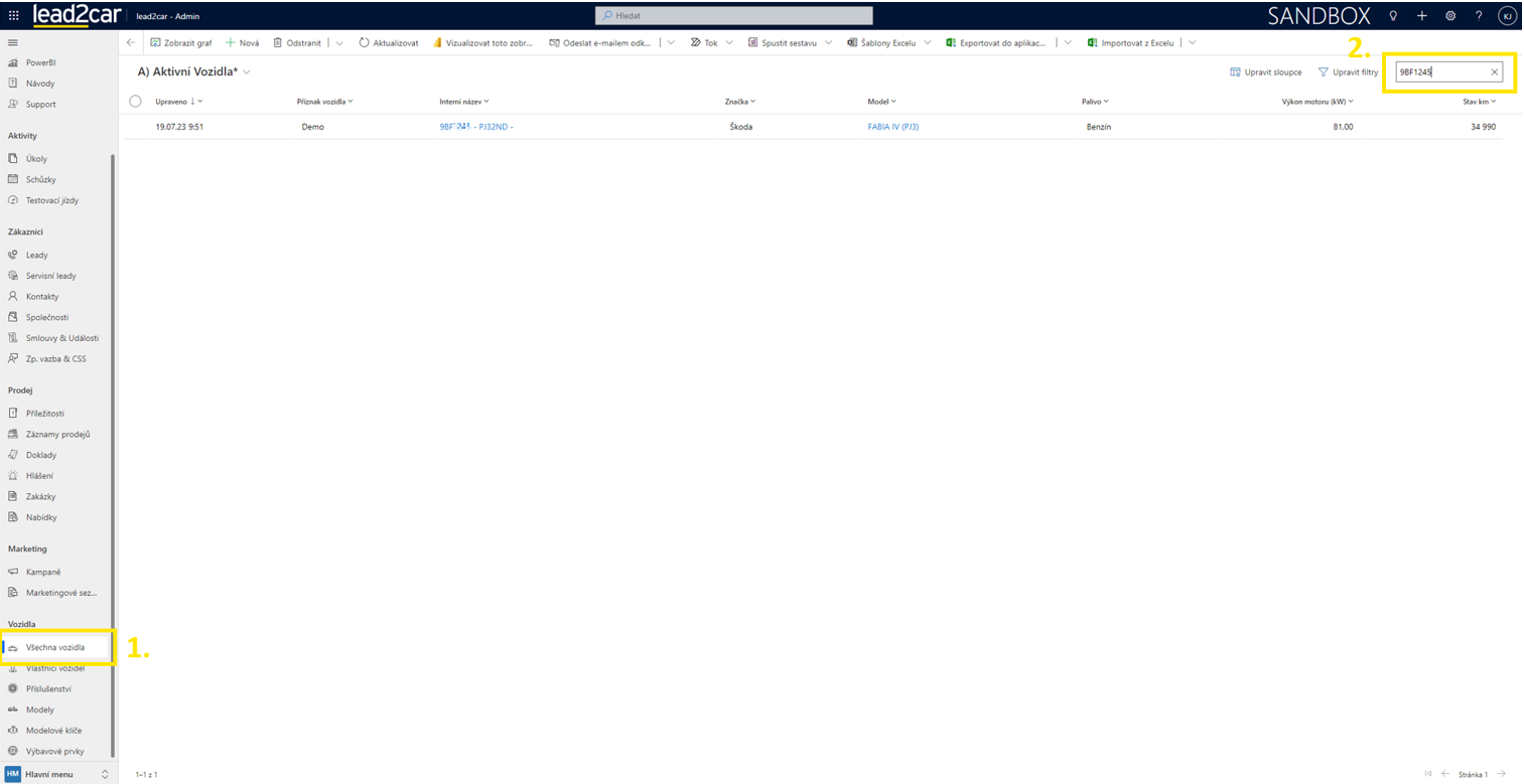 Uložené vozidlo bude zobrazeno v seznamu mezi ostatními. Lze vyhledat pomocí filtru a dále upravovat stejně jako při jeho vkládání.